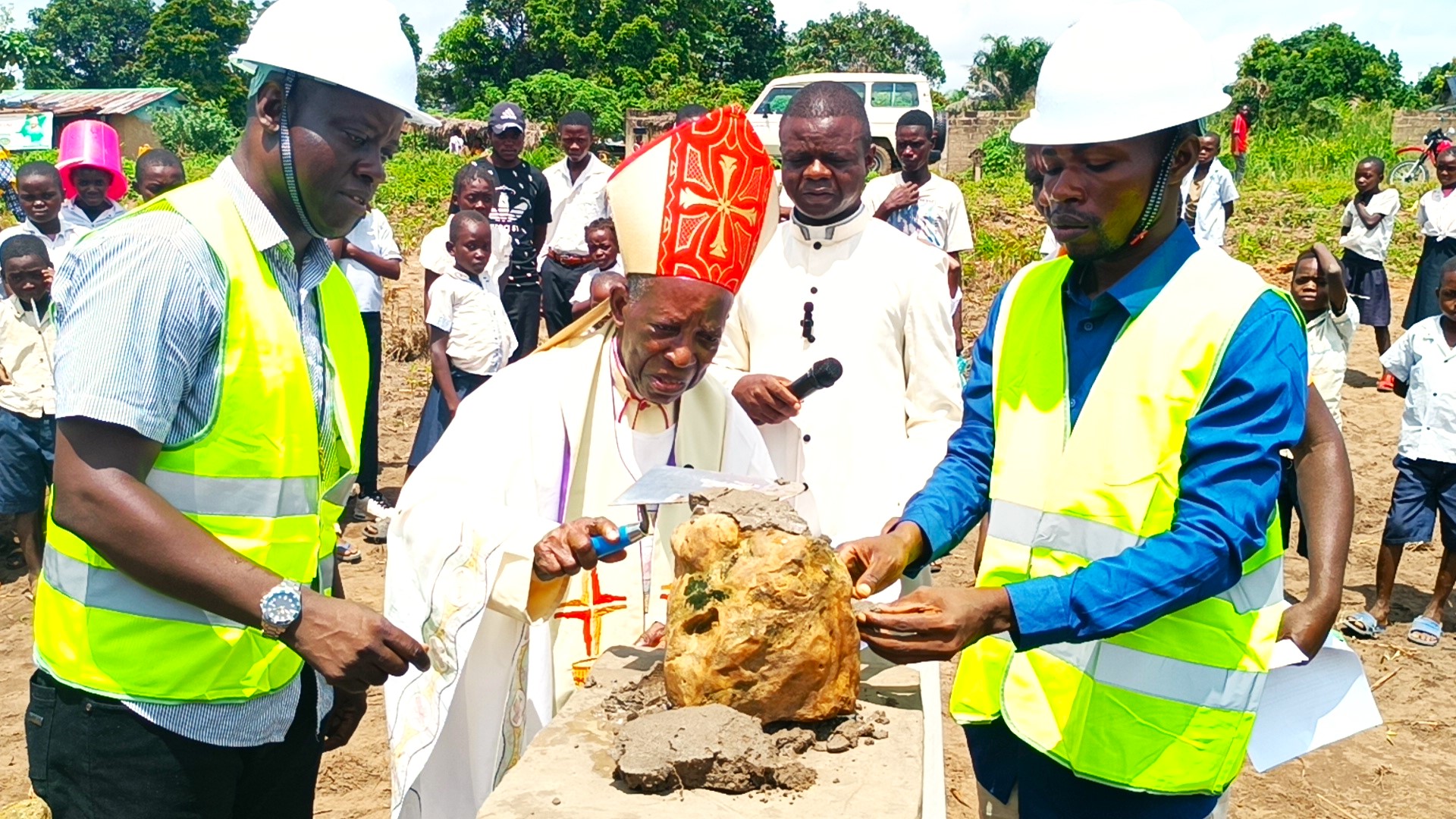 Mgr Louis Mbwol, 92 ans, évêque émérite d’Idiofa, doyen des Oblats congolais, ancien maître des novices, a lui-même posé la première pierre du Complexe scolaire qui porte son nom. C’était le jeudi 30 novembre. Arrivé de Kinshasa, Mgr Louis Mbwol a béni l’assistance, les lieux et les intervenants et prié pour que Dieu protège tout le travail et tous les ouvriers et les bâtisseurs.